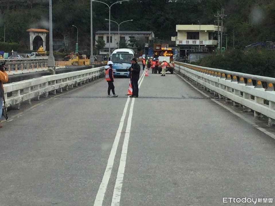▲ 通往台11(海線)及193縣道的花蓮大橋多處隆起及劽縫,工程人員搶修中。(圖/記者王兆麟攝)