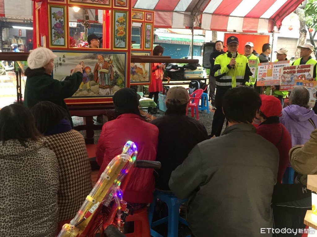 警方表示,由於年關將近,各大市場採買人潮聚集,為了增加民眾有關「防竊、防搶、防盜、防詐騙與反毒」等預防犯罪觀念,以及警察維持「交通安全順暢」、「防制交通事故」、「嚴懲重大違規」之防制作為,宣導成員們在大稻埕公園逐一發送反詐欺等宣導文宣及應景年節紅包袋,吸引參與廟會祈福遊行的民眾們的駐足目光。