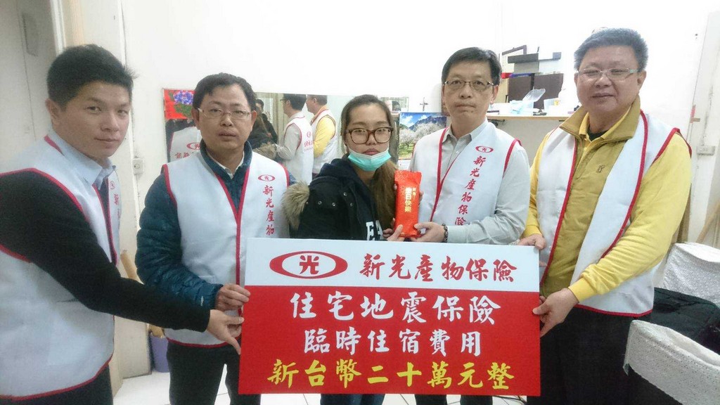2月6日花蓮發生6級強震後,新光產險即設立災區保戶服務中心並協助住宅地震保險基金成立聯合服務中心,儘速理賠受災保戶每戶20萬元臨時住宅費用。由於台灣位於地震地帶,新產建議民眾可考慮加保「輕損地震險」,不必等到房屋「全損半倒」才能啟動理賠機制,亦提醒民眾關心災情同時,檢視自家住宅的安全及保障。