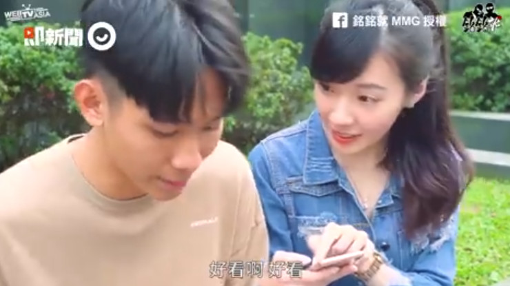 ▼影片中的女生不斷暗示,「這包包很便宜ㄟ!5折喔!」希望男生買給她,但男生不但聽不懂,還跟她說,「買,好看!」(圖/ETtoday)