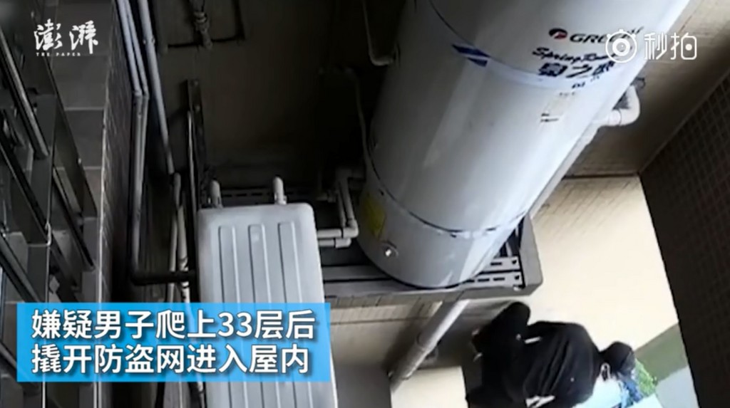 ▲廣州出現一名奇葩小偷,只靠著手套就爬上了33樓。(圖/翻攝自澎湃新聞的秒拍,以下皆同)
