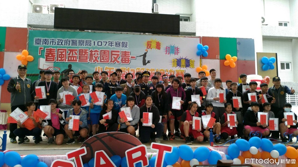 ▲台南市警局107年寒假「第8屆春風盃暨校園反毒—少年3對3籃球總決賽」,成續出爐,並頒獎各組前4名。(圖/警方提供)
