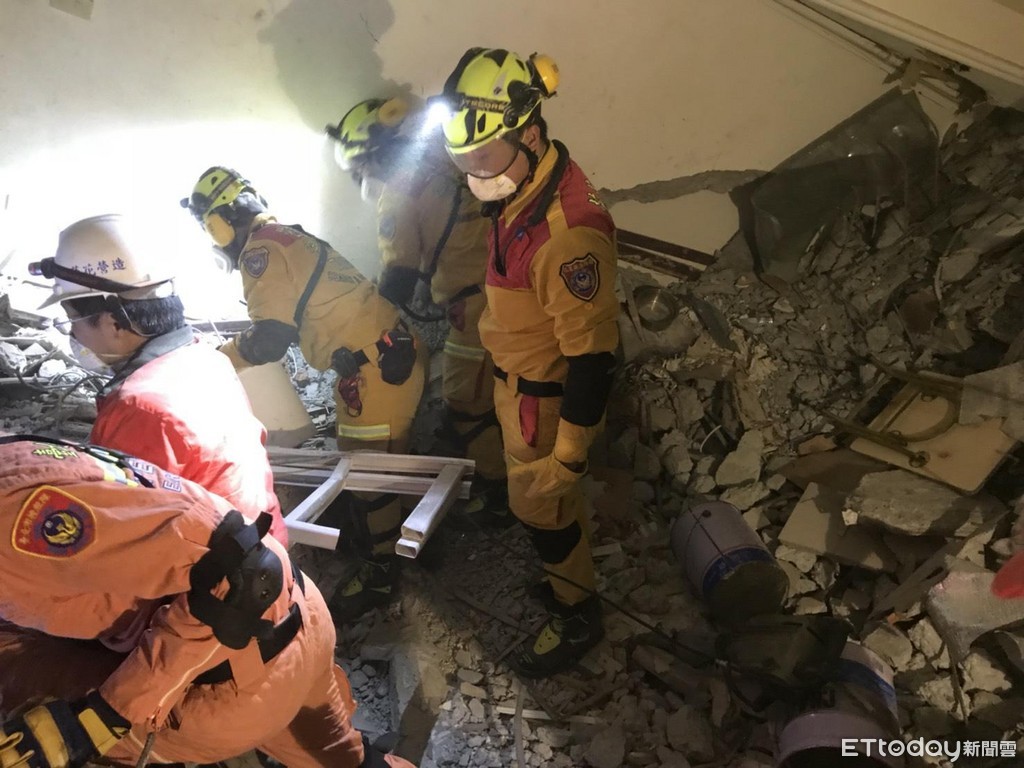 ▲雲翠大樓倒塌,特搜隊員搜救入住201房的5名陸客。(圖/記者林裕豐翻攝)