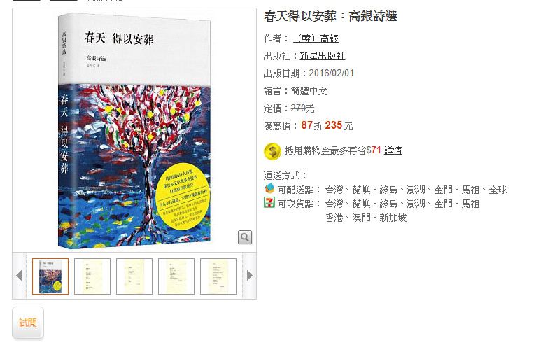▼ 高銀的詩被翻譯成多國語言,台灣也有出版。(圖/翻攝自博客來網路書店官網)