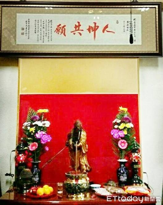 ▲「人神共願」匾額,供奉在關聖帝君神像上,以此願力保佑偵查隊除暴安良匡靖治安。(圖/記者林悅翻攝)