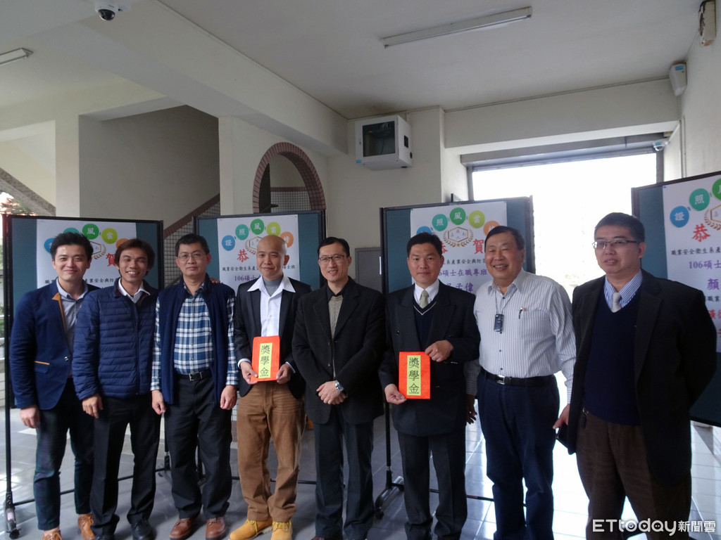 106考選部專技高考日前放榜,嘉南藥理大學職業安全衛生系產業安全衛生與防災碩士班,在職專班學生吳尚鴻及吳孟偉,分別榮登工礦衛生技師與工業安全技師金榜,同班已有3位「雙技師」!嘉藥職安系友、聯成工業安全衛生技師事務所負責人何健聖,感謝母系致力培育職安人材,特致贈獎學金給2位學弟。