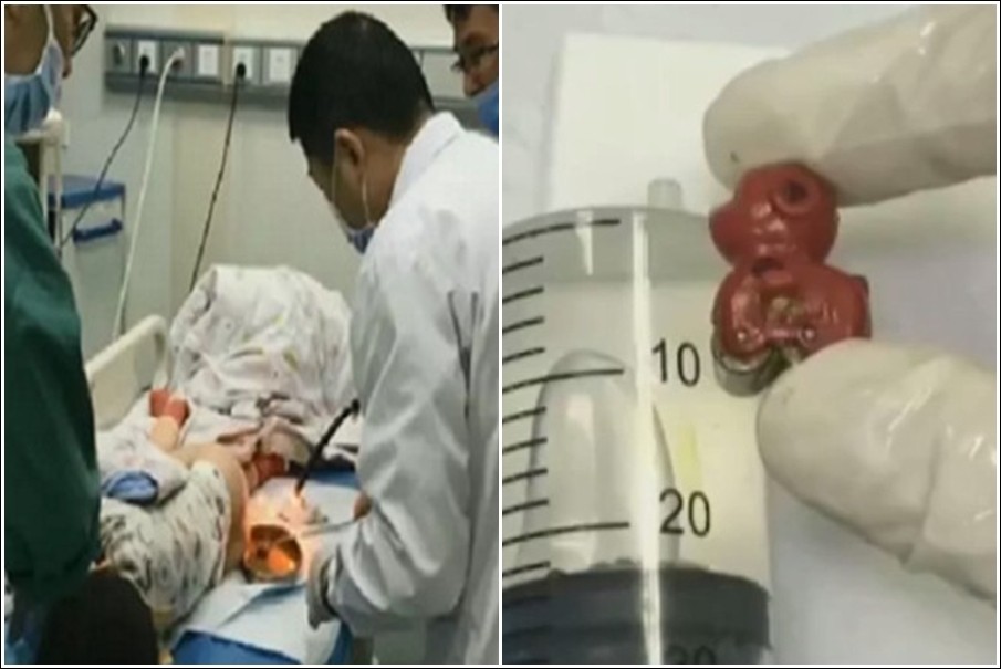 事發後4、5天,家長才趕緊把男童送到醫院治療,用專業的工具從小孩身體內取出一個長2公分、寬1.5公分的玩具狗,但這個玩具有些地方比較尖銳,早就把孩子的肛門戳破了。