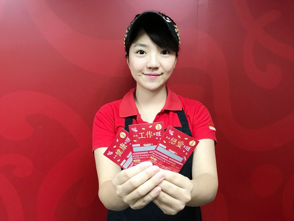 業者表示,刮刮樂張以祈願御守為設計發想,一連推出三款,包含『工作』最旺、今年『戀愛』最旺、今年『健康』最旺的驚喜祝福,且張張有獎,更有機會刮中一個月免費吃冰(價值4950元)經典冰淇淋買1送1等多項好禮。