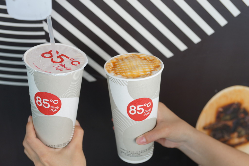 85度C推出大杯咖啡買1送1活動,於2月21日下午1點到晚上8點,限時7個小時,民眾點購摩卡咖啡、焦糖瑪奇朵、卡布奇諾、重拿鐵咖啡、拿鐵咖啡、招牌咖啡、美式咖啡或海岩咖啡一共8款,點購相同品項可享大杯買1送1優惠。