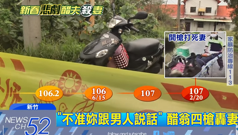 新竹市香山區一名70歲的林駱姓(複姓)老翁,長年懷疑68歲的張姓妻子外遇,昨(20)日下午在對方工作的米粉休閒工廠外埋伏,見女方下搬後就開槍射殺,自己則逃到公墓旁企圖喝農藥輕生,最終於今(21)日下午2點50分不治死亡。據悉,林駱翁有家暴前科,常常對女方惡言相向,甚至還試圖開車衝撞老婆,雖然女方已申請報護令,但還是無法阻止憾事發生。