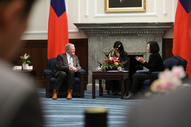 蔡英文總統今(21)日上午接見美國參議院「臺灣連線」共同主席殷霍夫(James Inhofe)及參眾議員訪問團,除感謝訪賓們長期在國防、國際事務以及高層互訪等議題上,大力支持臺灣,也強調臺灣將持續找尋更多的合作機會,與美國共同努力維護印太區域的和平與繁榮。