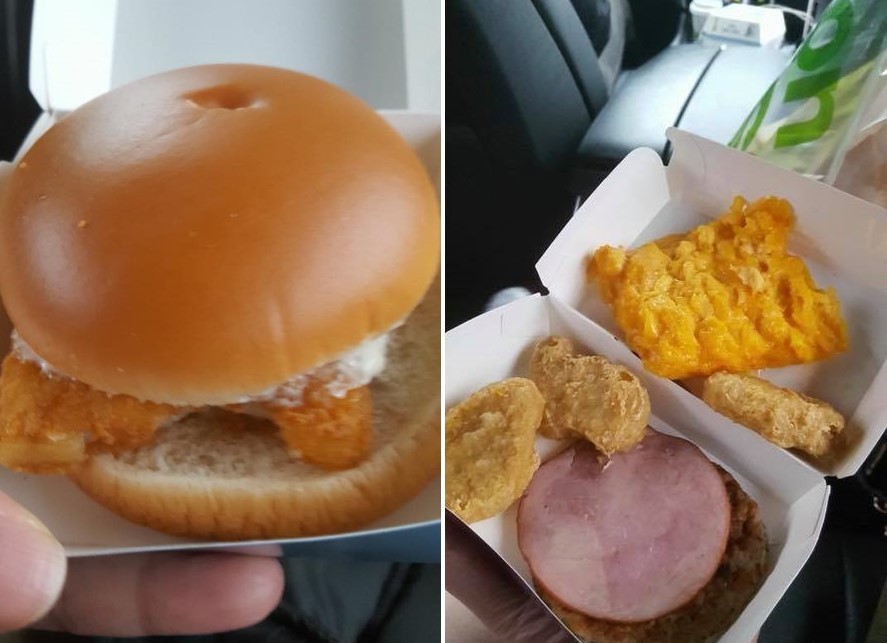 闕姓網友PO出3張照片表示,姊姊20日點完餐發現麥香魚好像有被咬過而缺了一角,接著打開9塊雞塊的盒子,裡面卻只有3塊雞塊、早餐火腿和肉片等品項,明顯是裝錯了,於是向店家反應這個狀況,對方說要看照片就互相加了LINE。