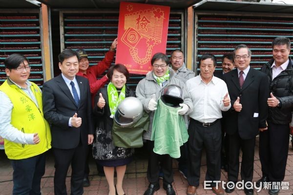 ▲台南市長李孟諺,示範安全著裝,呼籲民眾在犁蜂炮之餘,務必要注意自身安全。(圖/市府提供)