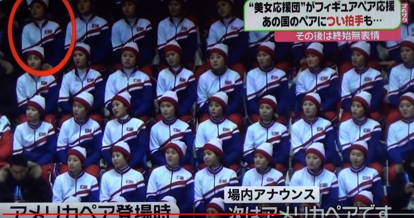 這段「北朝鮮の美女応援団」影片,只見北韓啦啦隊隊員14日在雙人冰舞項目替自己隊應援打氣,只要別隊上場就立刻面無表情或擺臭臉,但當美國雙人冰舞隊出場,一名啦啦隊員疑似看得太認真,忘記自己身份,忍不住替美國隊鼓掌,還露出甜美微笑。