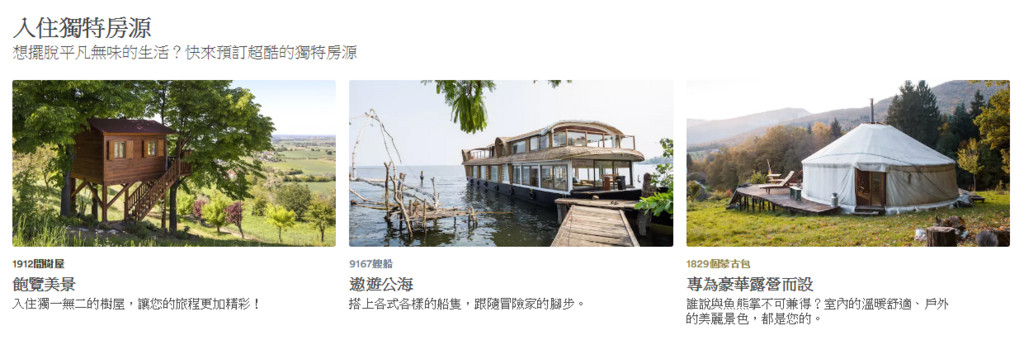 ▼為了讓每個旅客都能找到適合自己需求的房源,Airbnb也納入了遊艇、船屋、樹屋、帳篷等等特別的住宿環境。(圖/翻攝自Airbnb)