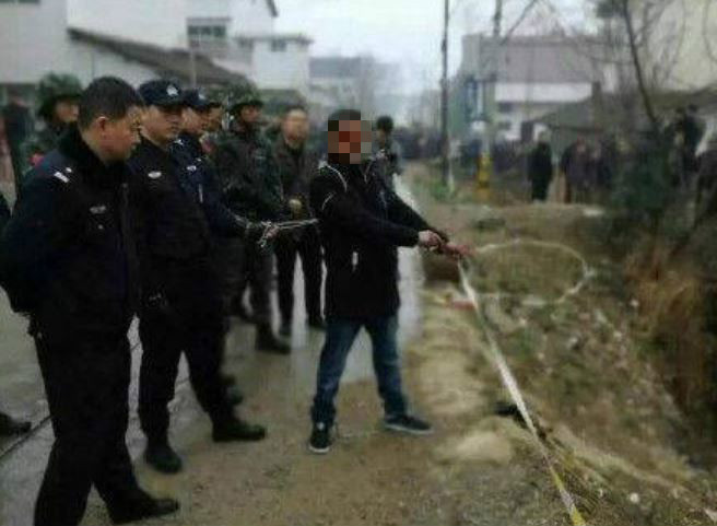 ▲張扣扣回到案發現場向警方指認。(圖/翻攝自封面新聞)