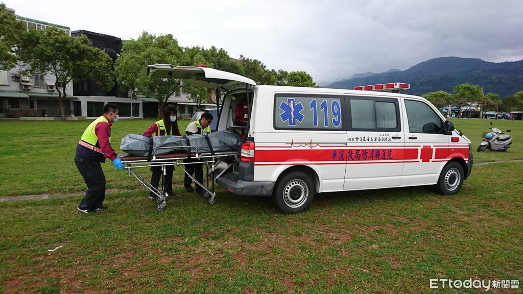 ▲搜救人員將大體移至河谷處並施放狼煙,由空勤總隊直升機吊掛載往玉里第一運動場,由警方接手後續事宜。(圖/花蓮縣消防局提供 下同)