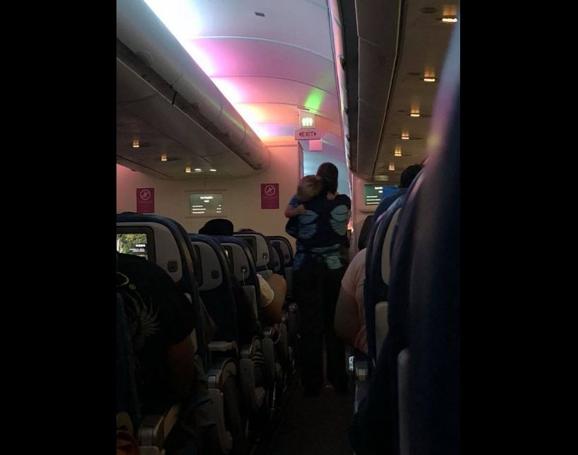 ▲ 暖心空姐哄哭鬧小孩,讓乘客們十分感動。(圖/翻攝自臉書/Rachel Yuen)