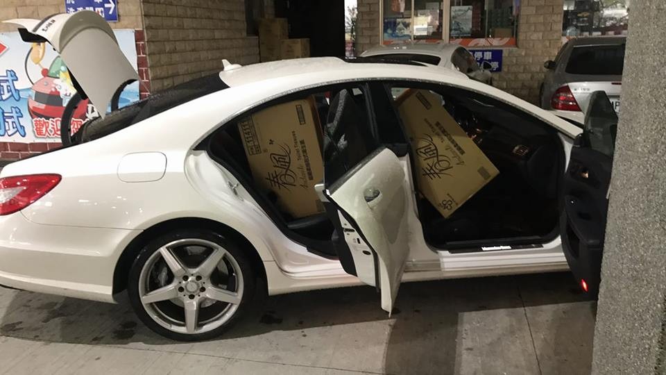 網友在「台灣新聞記者聯盟資訊平台」po出照片,笑說「衛生紙全部被包了,開奔馳CLS550 搶購衛生紙,這個會轟動全世界,呵呵!」只見白色賓士車門大開,而座位被兩大箱衛生紙給占滿。