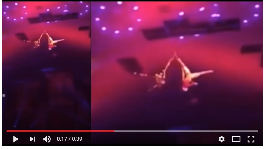 ▲馬戲團進行空中表演時,表演家不慎摔下落地。(圖/翻攝自louis rascasse的YouTube)