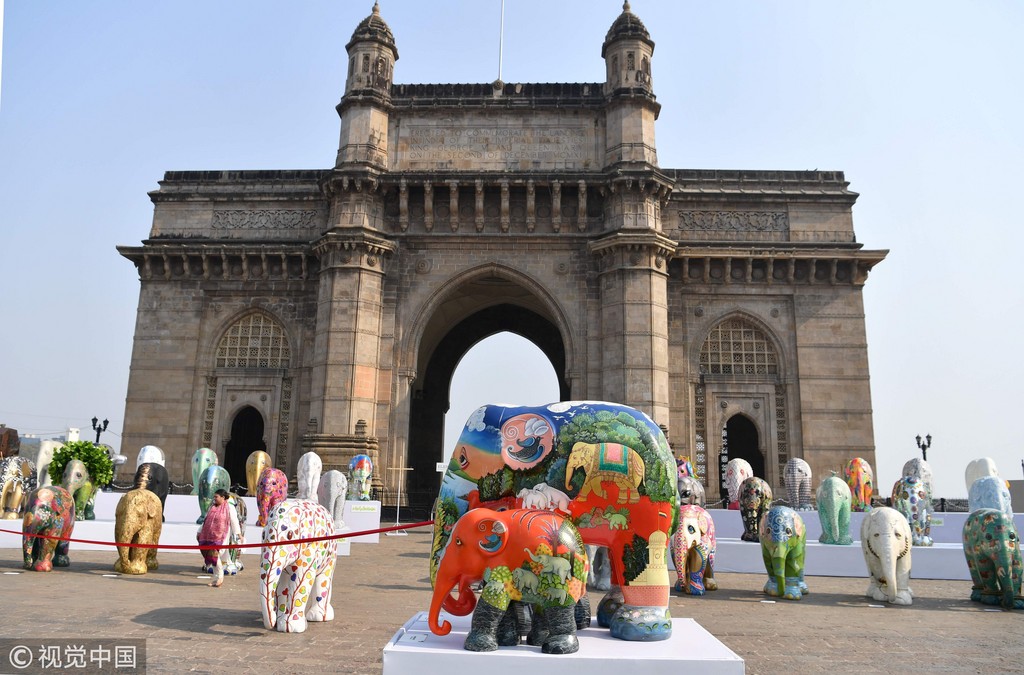 結束世界巡迴展覽的「大象遊行」( Elephant Parade)25日到了印度孟買(Mumbai)。由藝術家、設計師,以名人設計的101頭大象雕塑,在孟買結束最後3周的展覽後,將全數拍賣,為亞洲大象走廊籌措資金,提高人們對大象的保護意識。