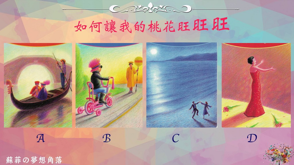 請放鬆心情,請依直覺選擇圖中四張牌卡 (A)、(B)、(C)、(D)