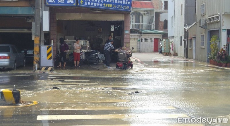 ▲台南市南區國民路,28日下午發生400MM自來水管「爆管」事件,造成該處水災,自來水公司緊急派員搶修。(圖/翻攝自台南諸事會社)