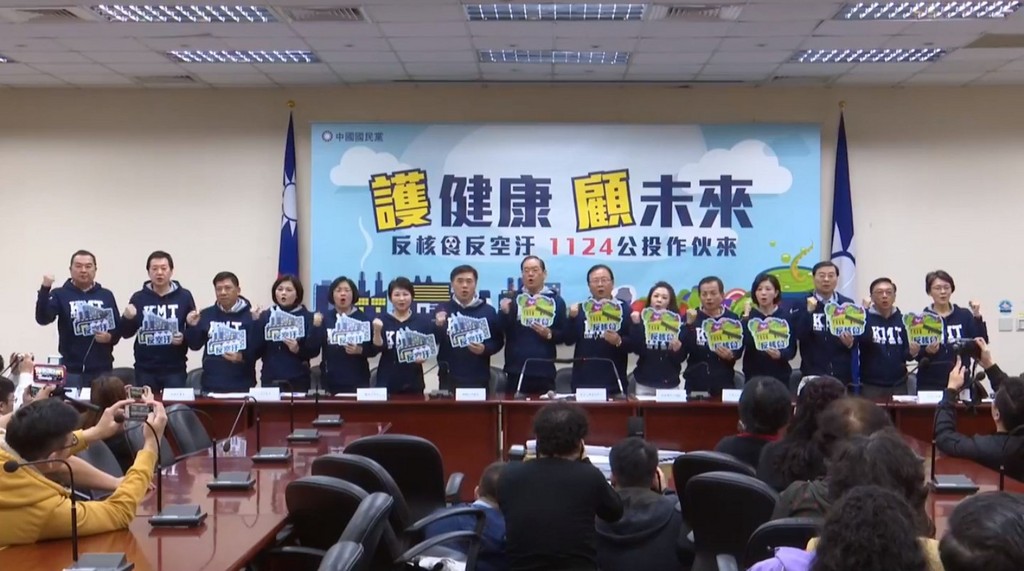國民黨所推動的反空汙主文為「「為改善空氣汙染,減少由火力電廠所排放PM2.5對國民健康之危害,你是否贊成逐年降低火力發電廠發電量?」;反核食公投的主文則是,「你是否同意政府開放日本福島311核災相關地區,包括福島與周遭4縣市(茨城、櫪木、群馬、千葉)等地區農產品及食品進口?」