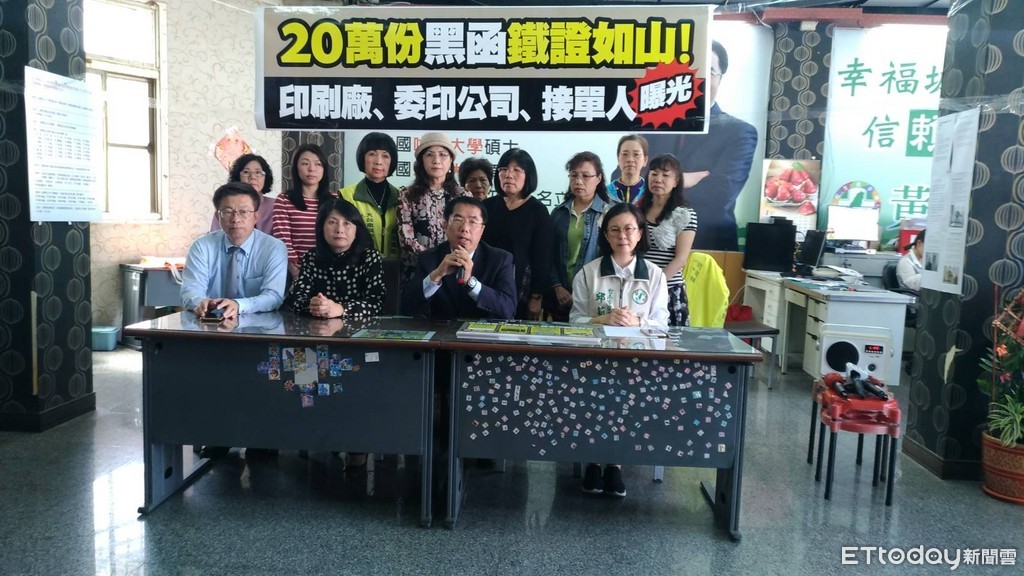 民進黨台南市長參選人黃偉哲1日,在新營服務處舉行「20萬份黑函鐵證如山」記者會,民進黨台南市議會黨團總召暨競選總部發言人邱莉莉表示,經過這幾天的明查暗訪,20萬份黑函事件已經鐵證如山,同時也把從委託人到印製出來的流程透過錄音、以及下單的證據蒐齊(圖/黃偉哲提供)。