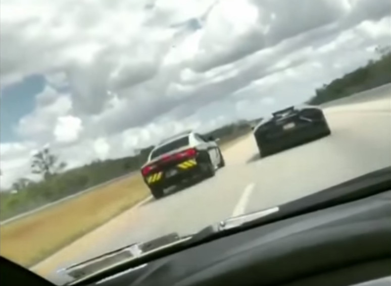 根據「Wink News」報導,近日,Instagram帳號 #JustLivinIt貼出這則,但宣稱這場公路競速發生在3年前。影片中可見,一輛藍寶堅尼一輛佛州公路巡警警車在高速公路上併排行駛,之後就開始一場「直線加速賽」,沒過多久,藍寶堅尼跑車就把警車遠遠甩在後面。