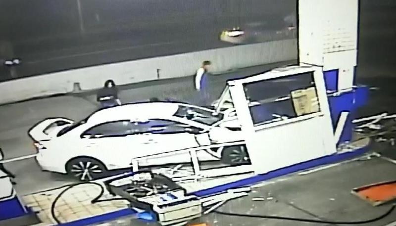 駕駛經酒測並無酒精反應,他向警方供稱,當時他於台1線由北往南行駛於內側車道,卻見西邊有車要橫向轉出,嚇得他趕緊將車往右偏,不料卻撞上加油機,但警方調閱監視器,發現該車完全沒有煞車的情況下,直接衝撞加油站,有驚無險的是,這輛車竟然閃過加油站旁50米左右的圍牆,衝撞進加油站,一旁還有貨車司機還在洗車,差一點遭到波及。