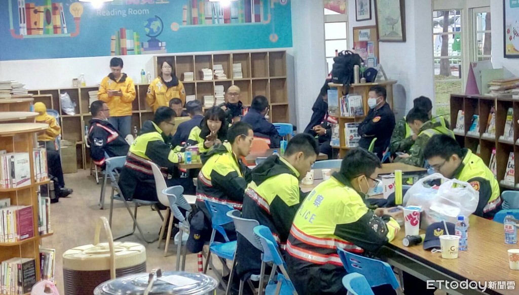 蔡館長説,花蓮警察分局長3月1日晚上巡視後,前進指揮所階段性任務完成,員警已全撤出。圖書館員工則在3月2日執行館藏物品盤點整架及館舍環境清潔,預計3月6日(星期二)正常開館,為久候的鄉親讀者提供服務(圖/花蓮市公所提供)。