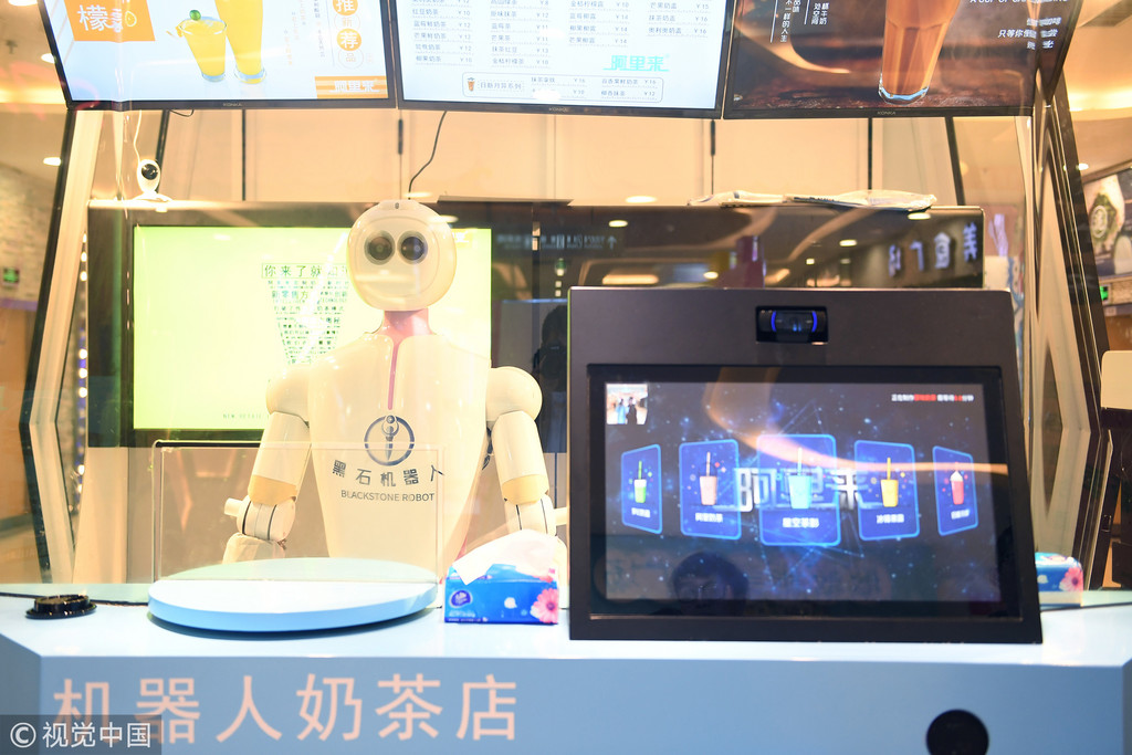 浙江杭州下沙高教園區5日出現一家「機器人奶茶店」,機器人一手包辦奶茶的點單、調製、端送等所有環節,調製1杯奶茶只需1分鐘,讓附近的大學生圍觀搶拍。奶茶店總經理林益選表示,還要再添加更多優化服務,像是點完餐後機器人還可以唱會兒歌或跳會兒舞,增加娛樂性功能。(中新網)