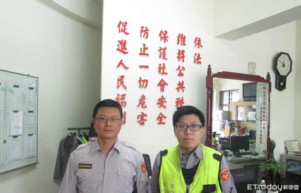 ▲市警六分局警員李名儒(左)、黃柏翔,了解婦人確實無能力付車資,應非故意坐霸王車,即自掏腰包付清500元車資給計程車司機,讓該名婦人十分感謝。(圖/警方提供)