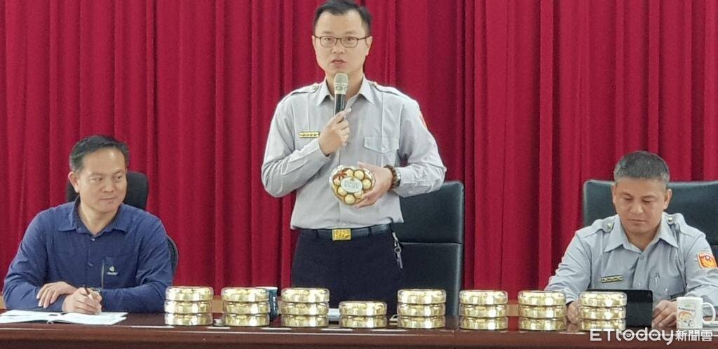 ▲台東關山警察分局分局長蔡耀順於8日婦女節當天,自掏腰包購買25盒知名心型巧克力,分送給女性同仁,感謝他們對於團隊的付出與貢獻,令同仁倍感溫馨!(圖/台東縣警察局提供 下同)