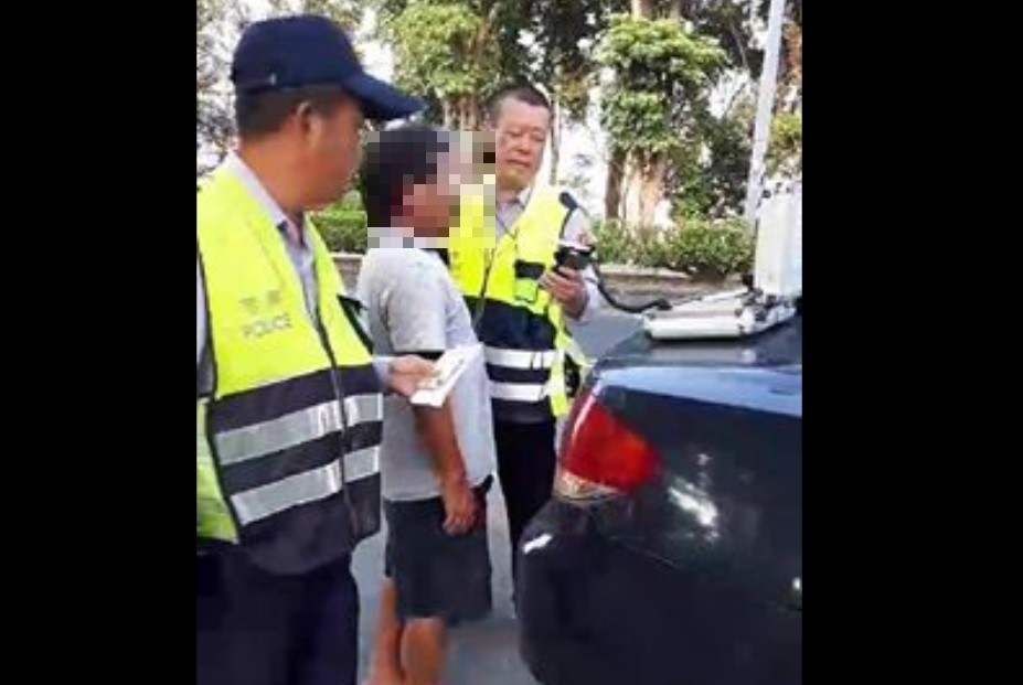 ▲駕駛做酒測不停碎念。(圖/翻攝自「爆料公社」)