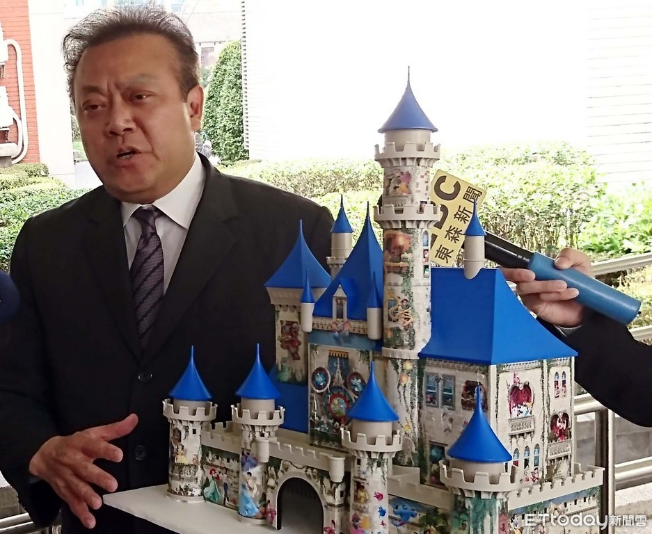 ▲立委蘇震清拿迪士尼模型表達高鐵延長的理念。(圖/記者屠惠剛攝)