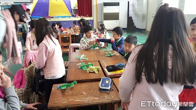 ▲小朋友們進行迴旋飛機製作課程。(圖/新生醫專提供)