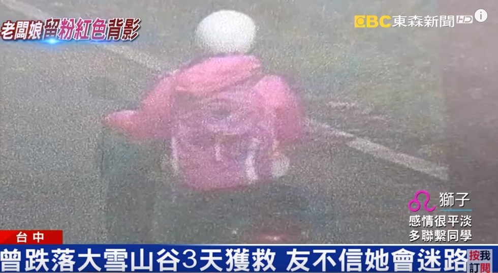 ▲台中雞排攤老闆娘獨攀大雪山,監視器畫面拍下了最後粉紅色背影,至此音訊全無,失蹤至今已47天。(圖/東森新聞)