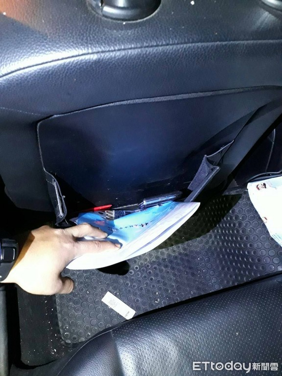 ▲2嫌主動將藏於駕駛座後方背袋內的一小包K他命(0.41公克)及K盤交出。(圖/記者林悅翻攝)