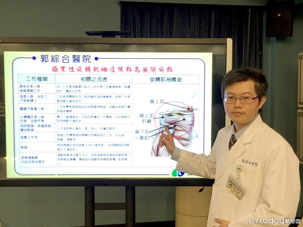 ▲郭綜合醫院職業醫學科廖再緯醫師,許多勞工飽受旋轉肌袖症候群之苦,卻不清楚這可能是一個職業疾病,進而忽略了相關的勞保給付及相關權益。(圖/記者林悅攝)