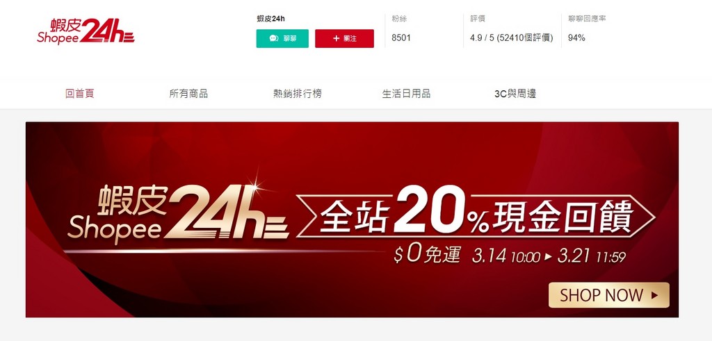 蝦皮購物宣告進軍B2C市場,今(3/14)正式推出「蝦皮24h」購物中心,除了提供24小時快速到貨、享有蝦皮商城三大保證,另一服務亮點是有24小時客服,做到即時回應用戶需求。目前蝦皮旗下涵蓋C2C拍賣、B2B2C商城、B2C購物,完整在台灣的電商版圖。