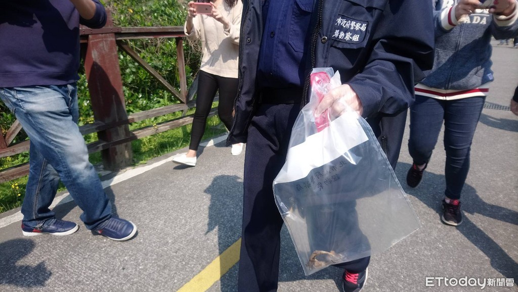 ▲警方在14日上午從棄屍地點帶走2塊骨骸,其中1塊疑似就是第一節頸椎。(圖/記者柳名耕攝)