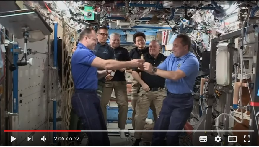 ▲NASA遠征54隊與55隊成員在太空站舉行交接儀式。(圖/翻攝自Space Videos的Youtube)