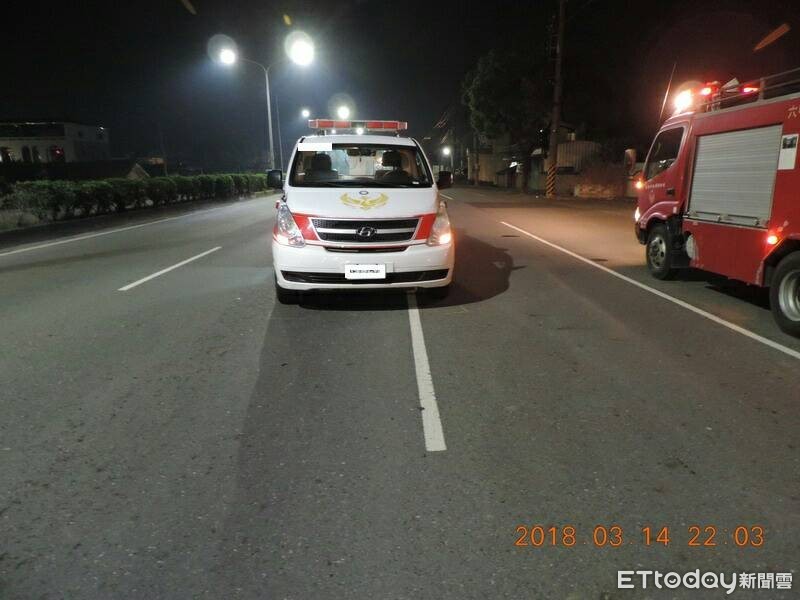 警方說,台南市消防局六甲分隊一輛救護車,昨晚9時20分載送患者欲前往柳營奇美醫院就醫,途經台1線省道六甲龜子港段,卻遭一部車輛撞及救護車左後側,救護車上邱姓消防隊員、替代役男、病患的妻子未受傷,車禍發生後,消防局馬上指揮柳營分隊救護車接手送醫,惟患者在15日凌晨突然心臟病發,急救無效身亡,死者家屬悲痛之餘,質疑是車禍延誤救治所致。