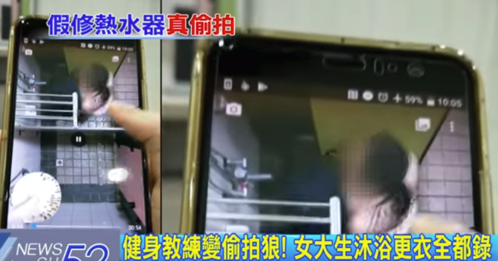 警方表示,女大生小美10日到屏東國民運動中心游泳結束後,發現淋浴間都有人使用,便轉往借用健身房的淋浴間;她詢問32歲的簡姓教練後,對方告知「熱水器故障」,帶她到設備正常的淋浴間洗澡,不料,小美洗到一半時發現,天花板竟有手機對著她錄影。