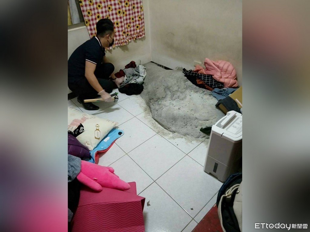 ▼警方持鐵鎚開挖封屍現場,張女被埋在水泥人形墓塚當中讓人毛骨悚然。(圖/翻攝自仁泰生命事業臉書)