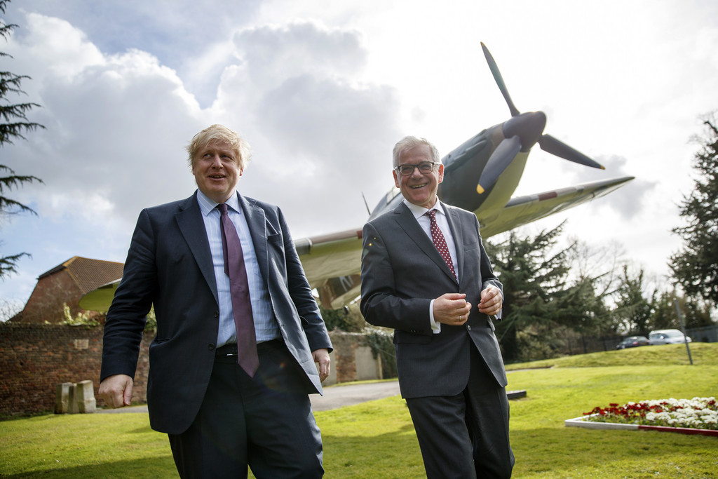 ▲ 英國外交大臣強生(Boris Johnson)和波蘭外交部長16日,一同拜訪英國地堡戰役博物館。(圖/達志影像/美聯社)