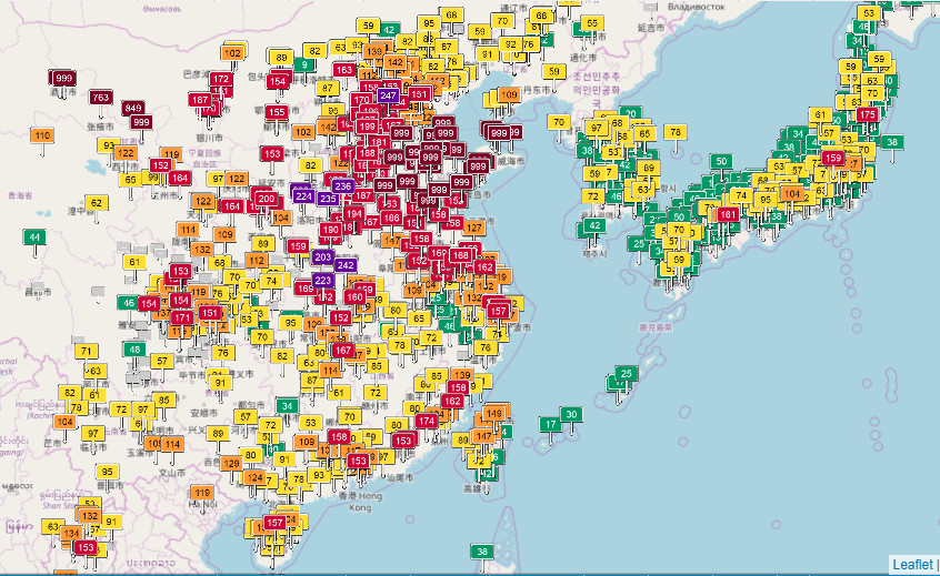 實際上,來自大陸的網頁的確有蒐集數據做亞洲空汙圖,台灣在晚間7點左右最多就是AQI橘標(101-150)屬於三級輕度汙染狀態,相較大陸北方幾乎都處於六級嚴重污染的狀況,確實較佳,但國土面積較台灣大十倍的日本全境也僅三處為紅標,韓國全境也都在AQI黃標以下,台灣空氣狀況與日韓仍有不小的落差,