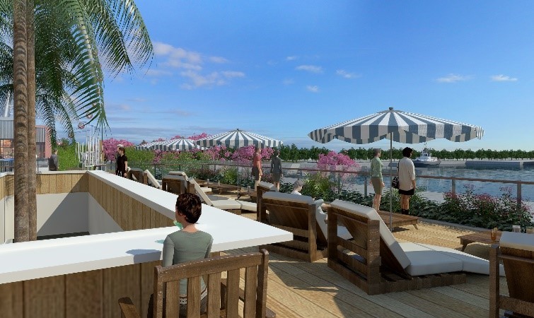 業者表示,台中港OUTLET設計概念定調為「ENJOY THE VOYAGE OF STYLE(享受時尚)」將結合海景優勢進行景觀設計,可能會像日本橫濱港旁三井OUTLET,結合港口特色,規劃孩童遊玩的親水設施,以及能遠望港口風景的海景餐廳。